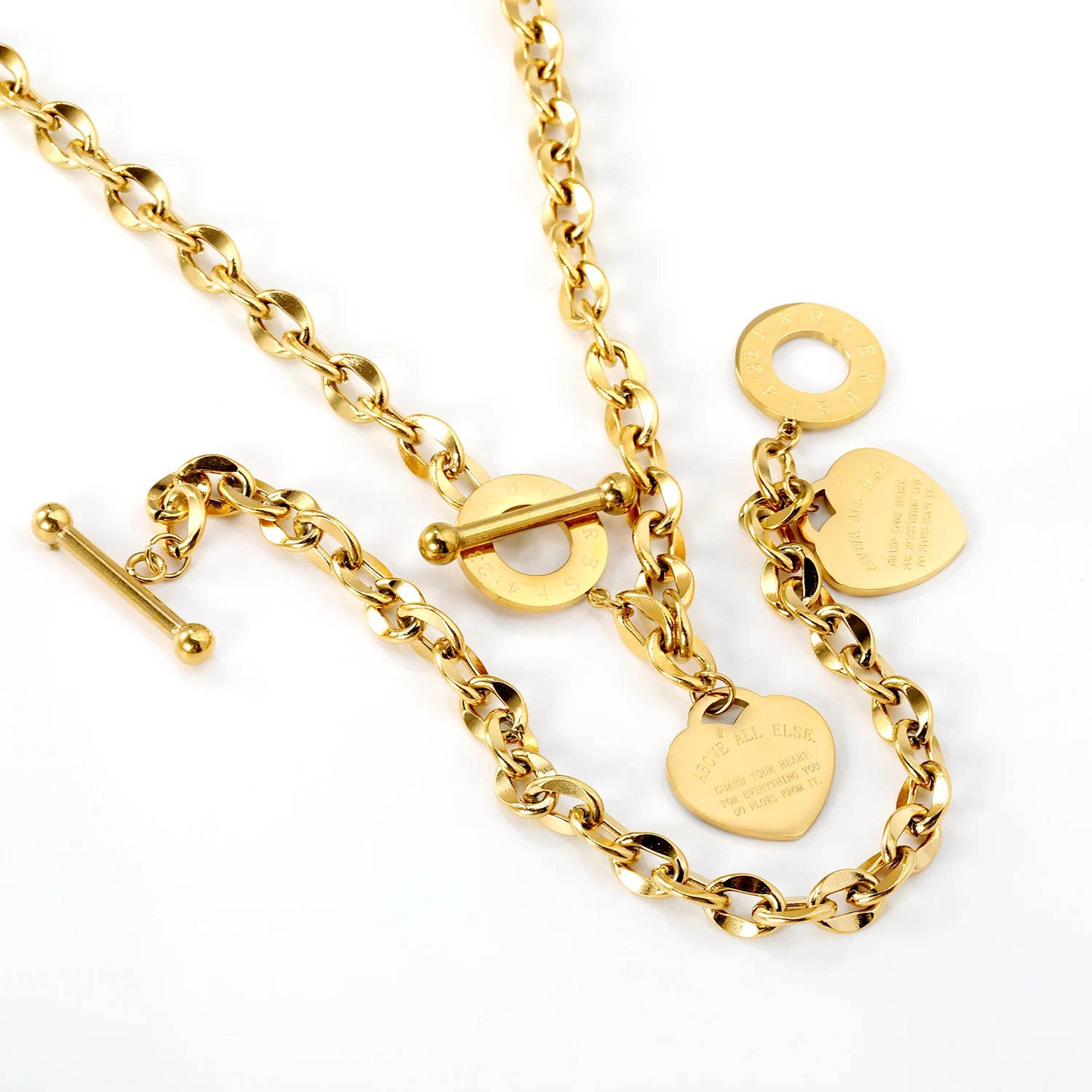 This Heart Love necklace and bracelet set combines durability, elegance, and romantic sentiment, making it a perfect gift for the special women in your life.