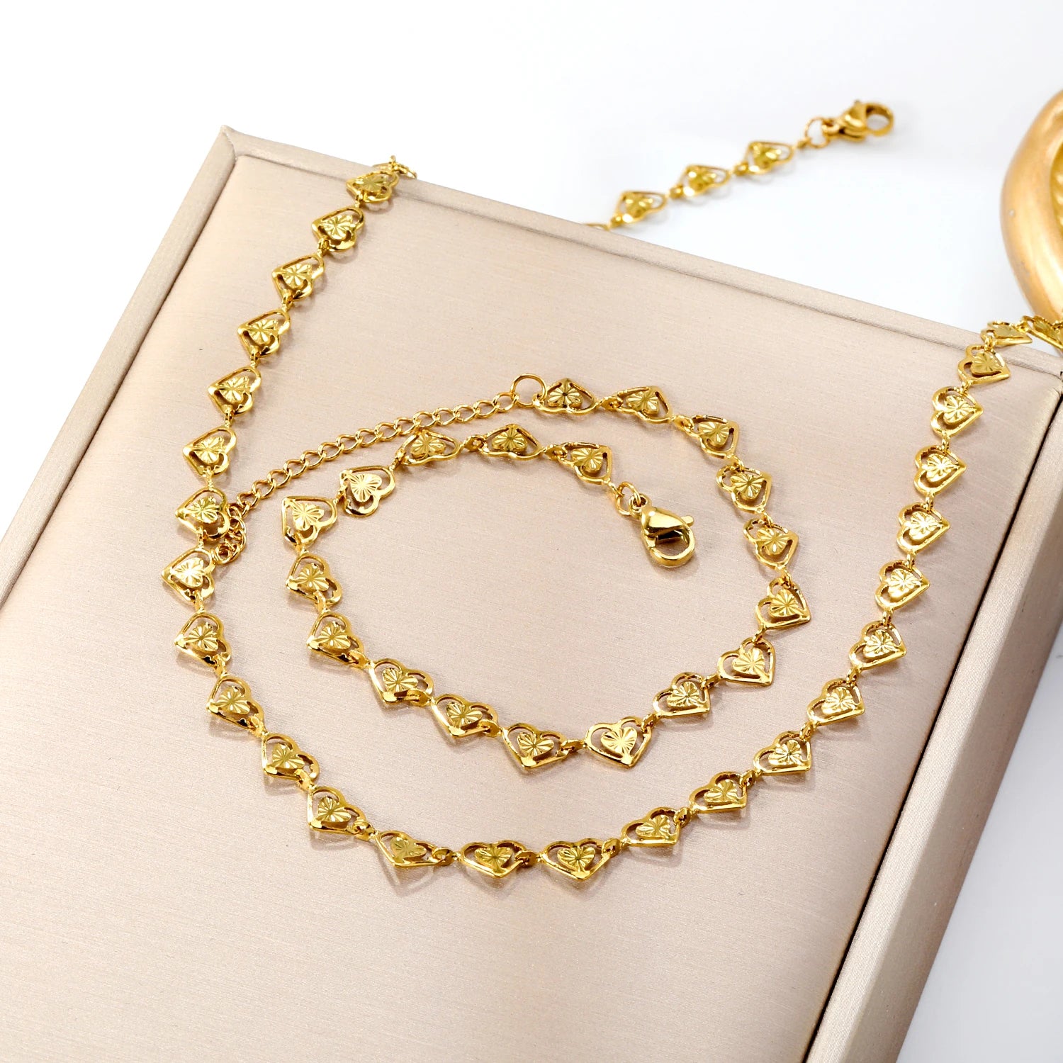 Celebrate love and style with this Heart Love jewelry set, featuring a matching necklace and bracelet crafted from glossy, waterproof stainless steel. Perfect for birthdays, anniversaries, or romantic occasions, this set adds a touch of elegance and charm to any outfit.