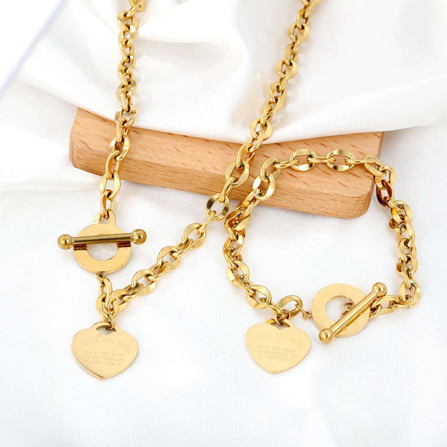Heart Love Jewelry Set – Necklace & Bracelet Set for Women | Glossy Waterproof Stainless Steel, Romantic Birthday Gift