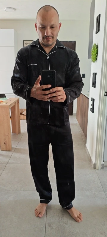 Experience ultimate comfort and style with this men’s pijama set, crafted from soft, breathable silk-feel microfiber. Designed with a long sleeve shirt and matching pants, this set offers the perfect balance of relaxation and elegance for sleeping or lounging at home.