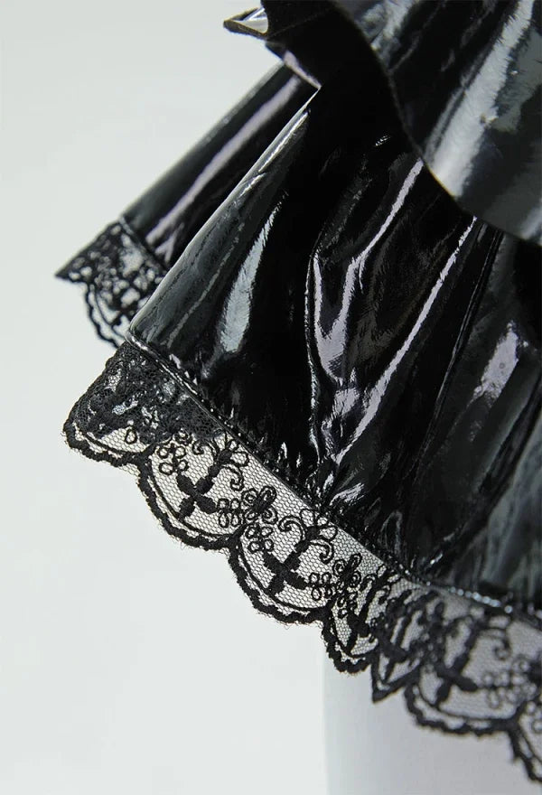 Step into your seductive alter ego with this sexy gothic Misa-inspired lingerie set. Featuring a flirty crop top, ultra-mini skirt, dramatic sleeves, and a matching choker necklace, this all-black ensemble is the perfect mix of sweet and sinful. Whether you're turning heads at a Halloween party or heating things up behind closed doors, this cosplay costume brings the fantasy to life.