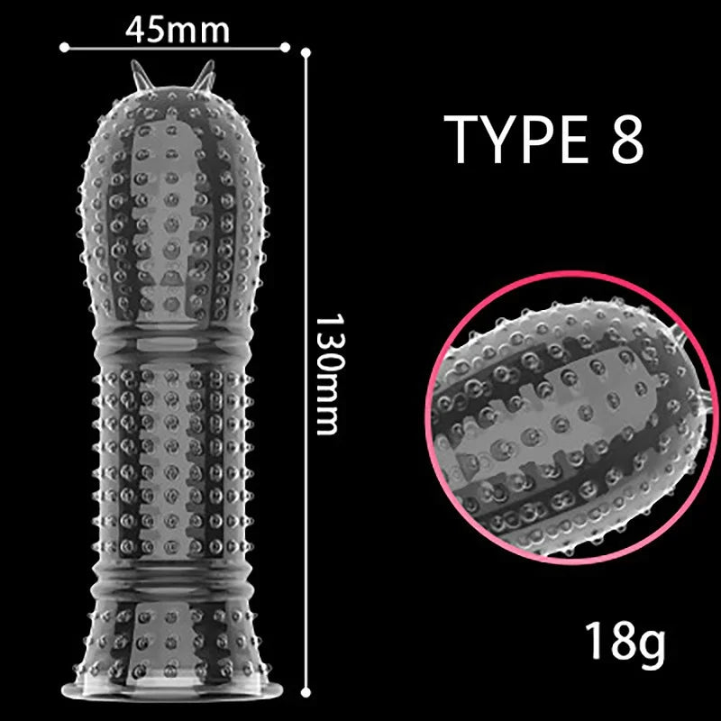 Enhance intimacy and amplify pleasure with this versatile set of crystal penis condoms and finger cock rings. Designed for men seeking longer-lasting performance, each piece provides a snug, stimulating fit that intensifies sensation for both partners. Available in a variety of shapes, these adult toys add playful excitement, heighten arousal, and create unforgettable intimate moments. Made from body-safe materials, they are soft, flexible, and comfortable, allowing you to explore new levels of passion and pleasure with confidence.