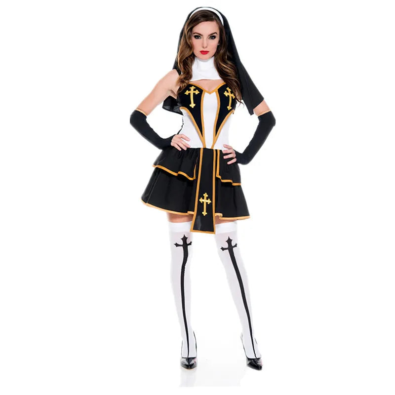 Priest and Nun Habit Costumes – Medieval Couple’s Outfit for Halloween & Parties For Him & Her Cosplay Fancy Party Dress Carnival Halloween Cheeky Roleplay Set