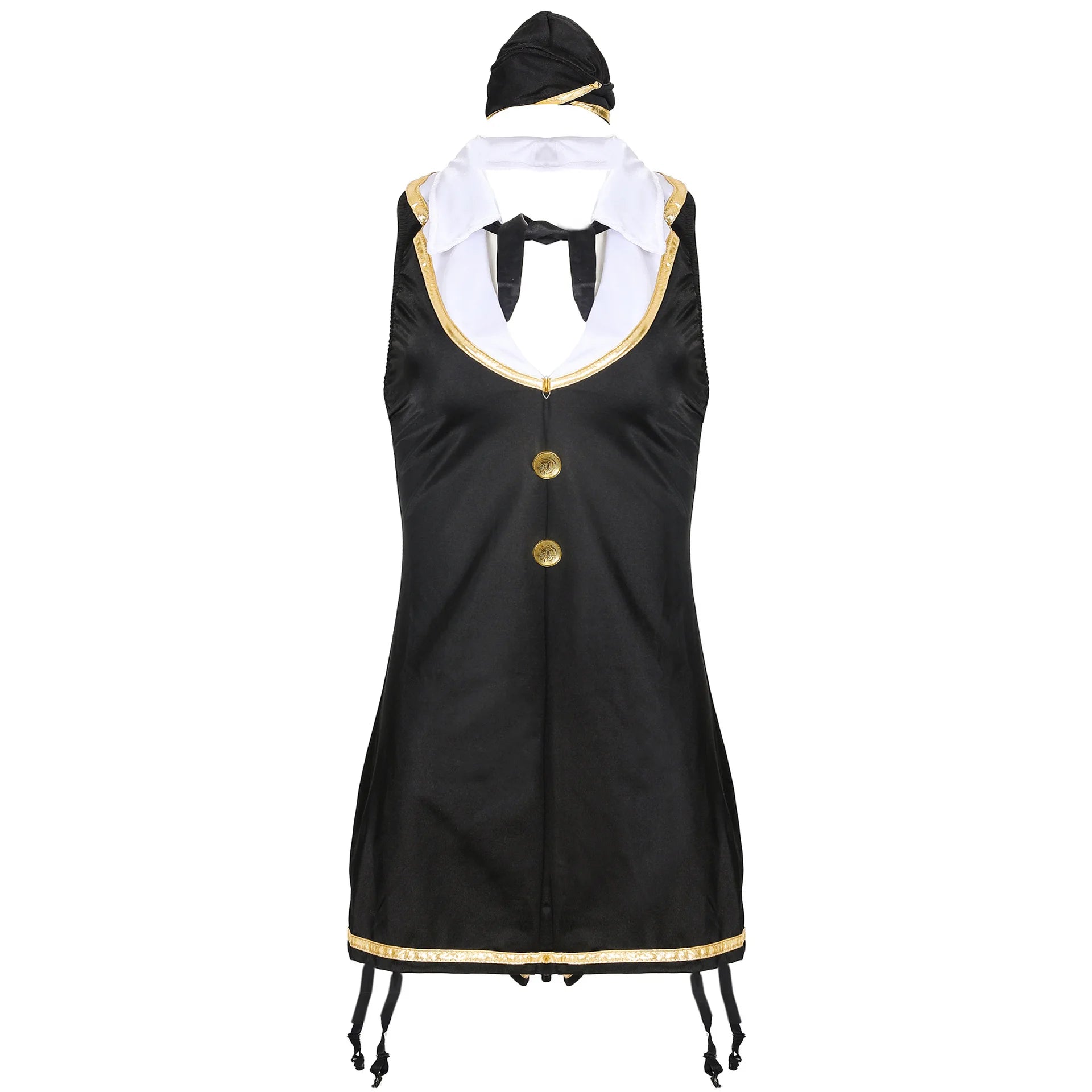 Take your costume game to new heights with this sexy stewardess role play costume, designed to turn heads at any Halloween, carnival, or cosplay event. Featuring a sleek, sleeveless dress uniform, this tempting outfit combines chic sophistication with a dash of playful allure, perfect for those looking to add some excitement to their next party or role play session. Whether you're soaring to new fantasy heights or simply looking for a fun and seductive look, this costume will ensure you make an unforgettable impression.